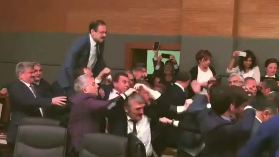 تداولت حسابات على منصة إكس تسجيل مصور قالوا أنه لمشاجرة بين حضور مؤتمر الحوار الوطني في دمشق.