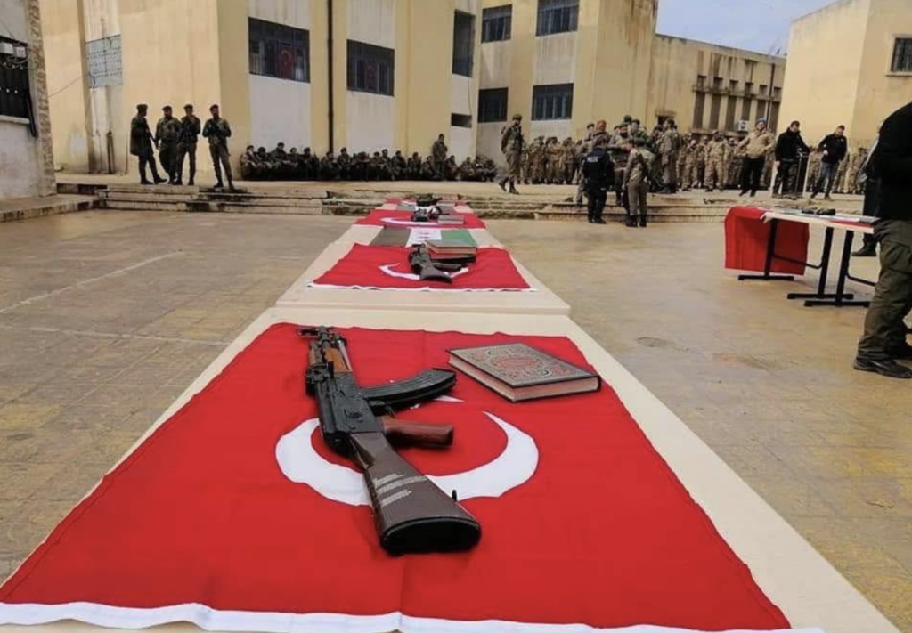 نشر الإعلامي ماهر شرف الدين صورة لتخريج دفعة عسكرية مع وجود العلم التركي بين العناصر السوريين، وعلق عليها “تخريج دفعة جديدة من “الجيش” الأموي ويتحدّثون عن العمالة للأجنبي.”