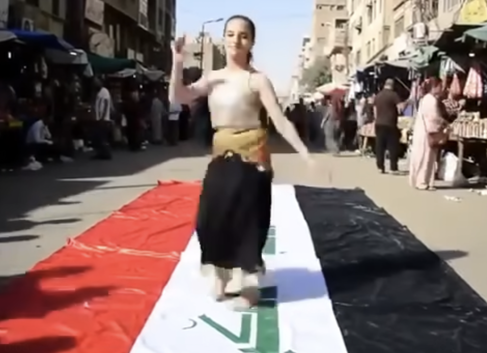 تداول ناشطون عبر وسائل التواصل الاجتماعي فيديو يُظهر فتاة ترقص على العلم العراقي على أنه في سوريا.