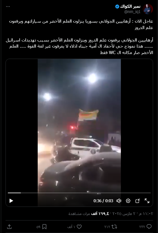 ادعت حسابات على منصة إكس أن قوات الأمن العام رفعت علم الطائفة الدرزية خوفاً من إسرائيل.