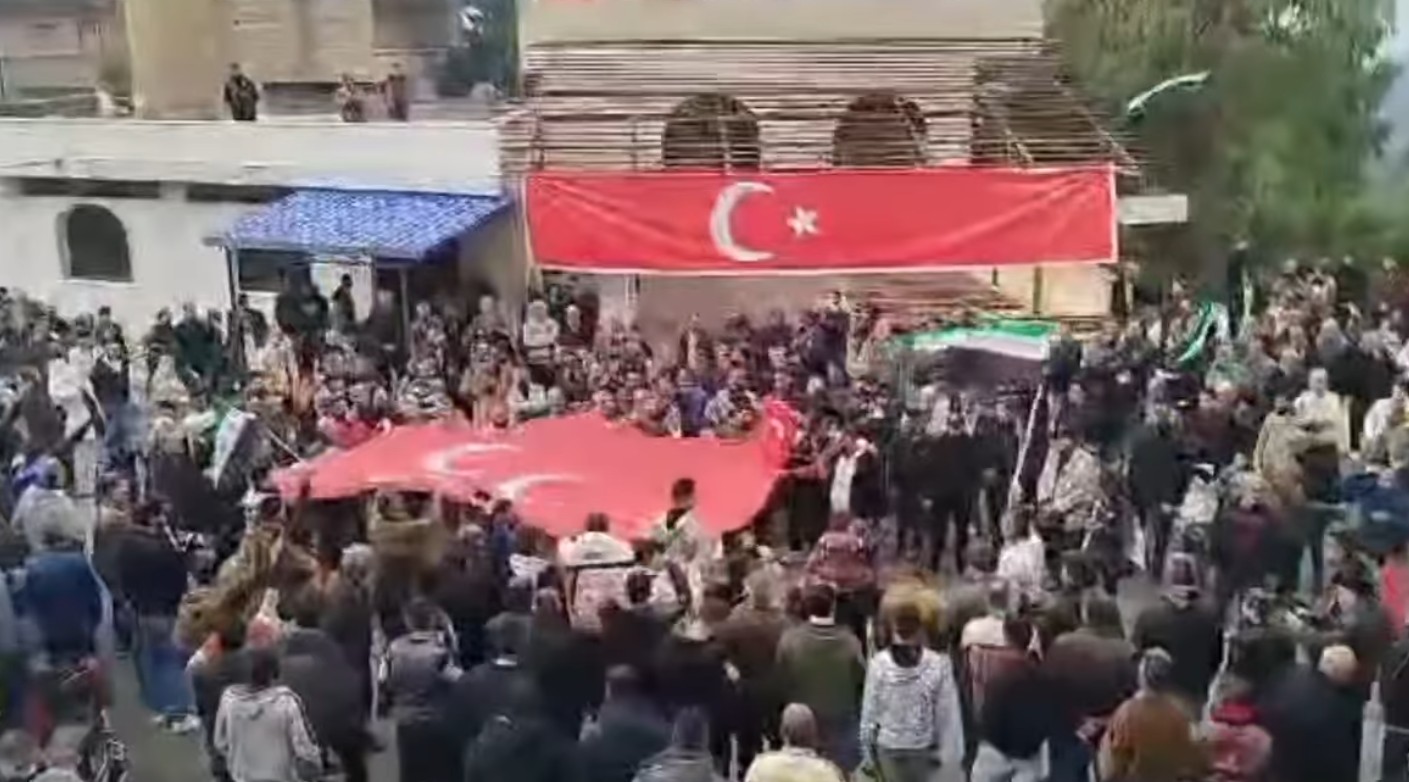 وكان مواطنون سوريون تركمان رفعوا العلمين السوري والتركي احتفالاً بمناسبة عودتهم إلى قراهم التي اغلقها النظام السابق لسنوات في منطقة باير بوجاق وقسطل معاف في اللاذقية.