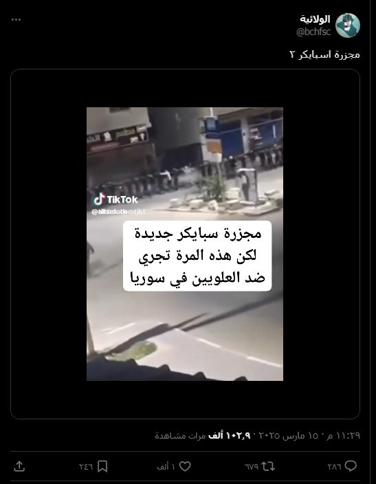 تداولت حسابات على منصات التواصل الاجتماعي، فيديو يظهر طابور من المدنيين، قالوا أنه لمجازر ارتكتب بحقهم في الساحل السوري، مشبهينها بمجازر سبايكر.