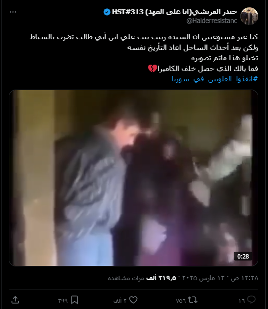كنا غير مستوعبين أن السيدة زينب بنت علي بن أبي طالب تضرب بالسياط، ولكن بعد أحداث الساحل في سوريا أعاد التاريخ نفسه، تخيلوا هذا ما تم تصويره، فما بالك الذي حصل خلف الكاميرا.