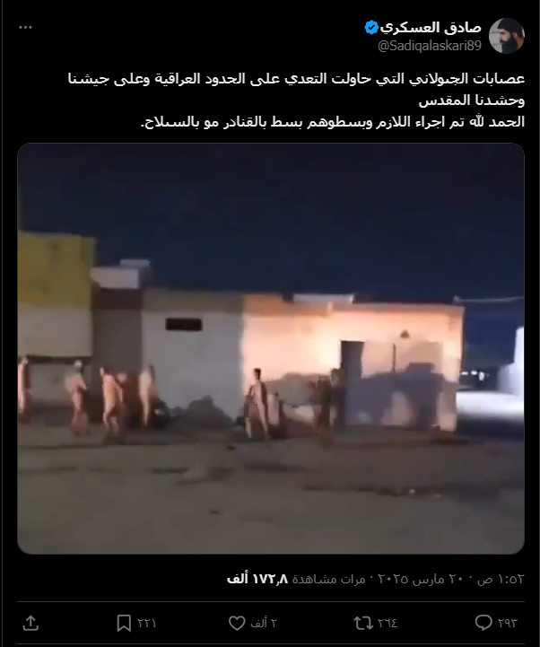 تداولت حسابات على منصة إكس مقطع فيديو، قالوا أنه لتوغل عناصر من الجيش السوري على قطاعات الجيش العراقي في منطقة عكاشات بالعراق.