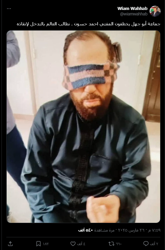 جماعة أبو جهل يخطفون المفتي احمد حسون نطالب العالم بالتدخل لإنقاذه.