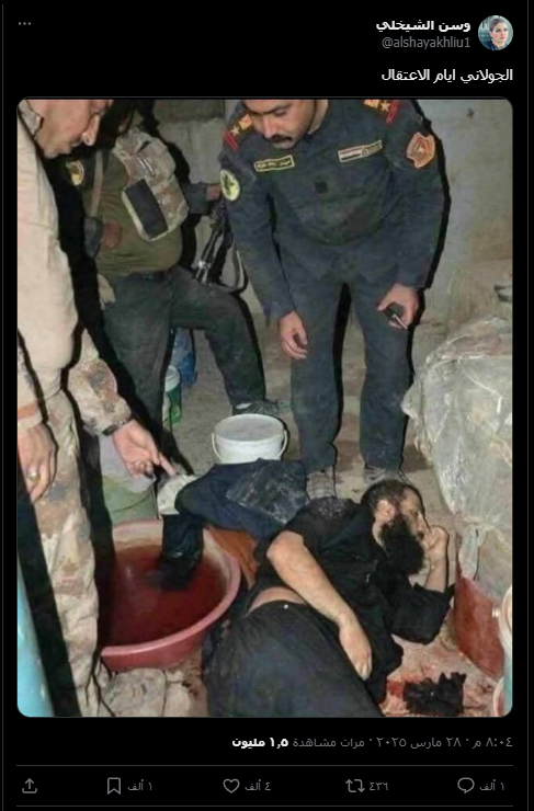 انتشرت على منصة إكس صورة زعم ناشروها أنها للجولاني أيام اعتقاله في العراق.