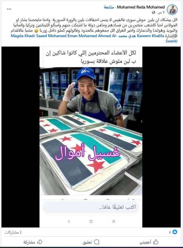 شركة بـ لبن هي شركة مصرية، ويعمل بها عدد من العمال السوريين ولا علاقة لهم بملكيتها.