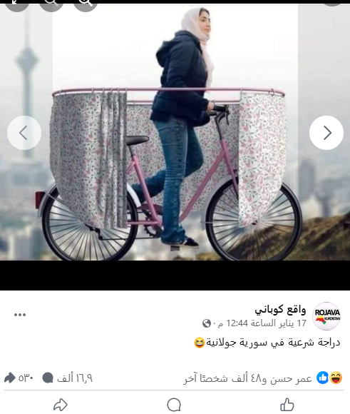 ينتشر مؤخراً صورة لدراجة هوائية قيل أنها صنعت في سوريا ومخصصة للنساء.
