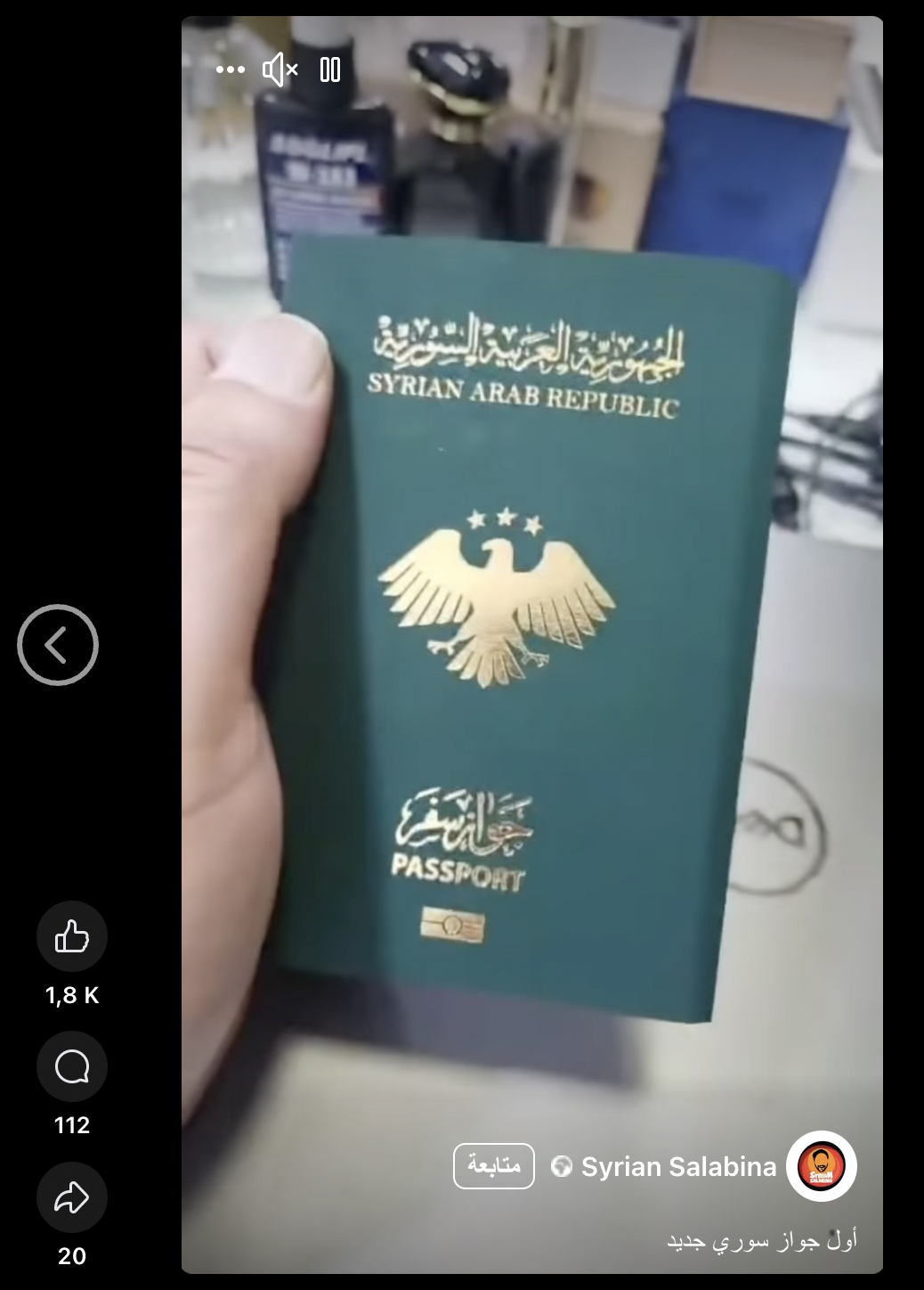 تداولت صفحات على منصة فيس بوك فيديو لجواز سفر سوري جديد، قالوا أنه أول جواز سفر سوري بالنسخة الجديدة، ويحمل الهوية البصرية الجديدة لسوريا.