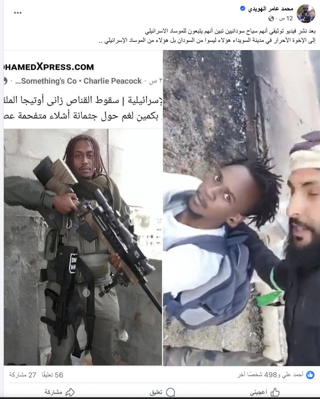 الجندي المسلح الذي يتم تداول صورته على انه من الموساد، ليس نفس الشخص السوداني الذي يقيم في دمشق.